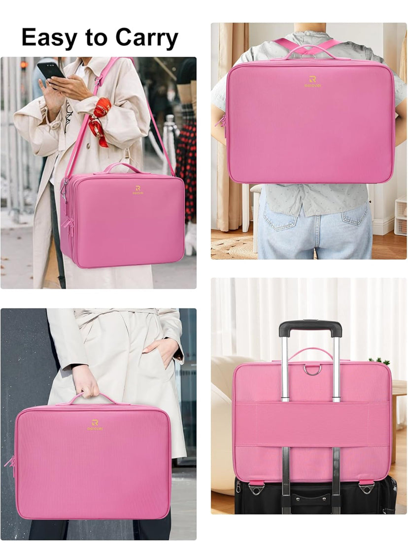 Doble capa, compartimientos y correas ajustables, en la primera capa encuentras tres bolsillos grandes con cremalleras y en las segunda capa 12 ranuras para brochas o cepillos con cubierta protectora, material nylon limpermeable de alta calidad, duradero y fácil de limpiar, cremalleras reforzadas para mayor seguridad. Puedes llevarla al hombro, como bandolera o mochila. Permite acoplar a la maleta de viaje.